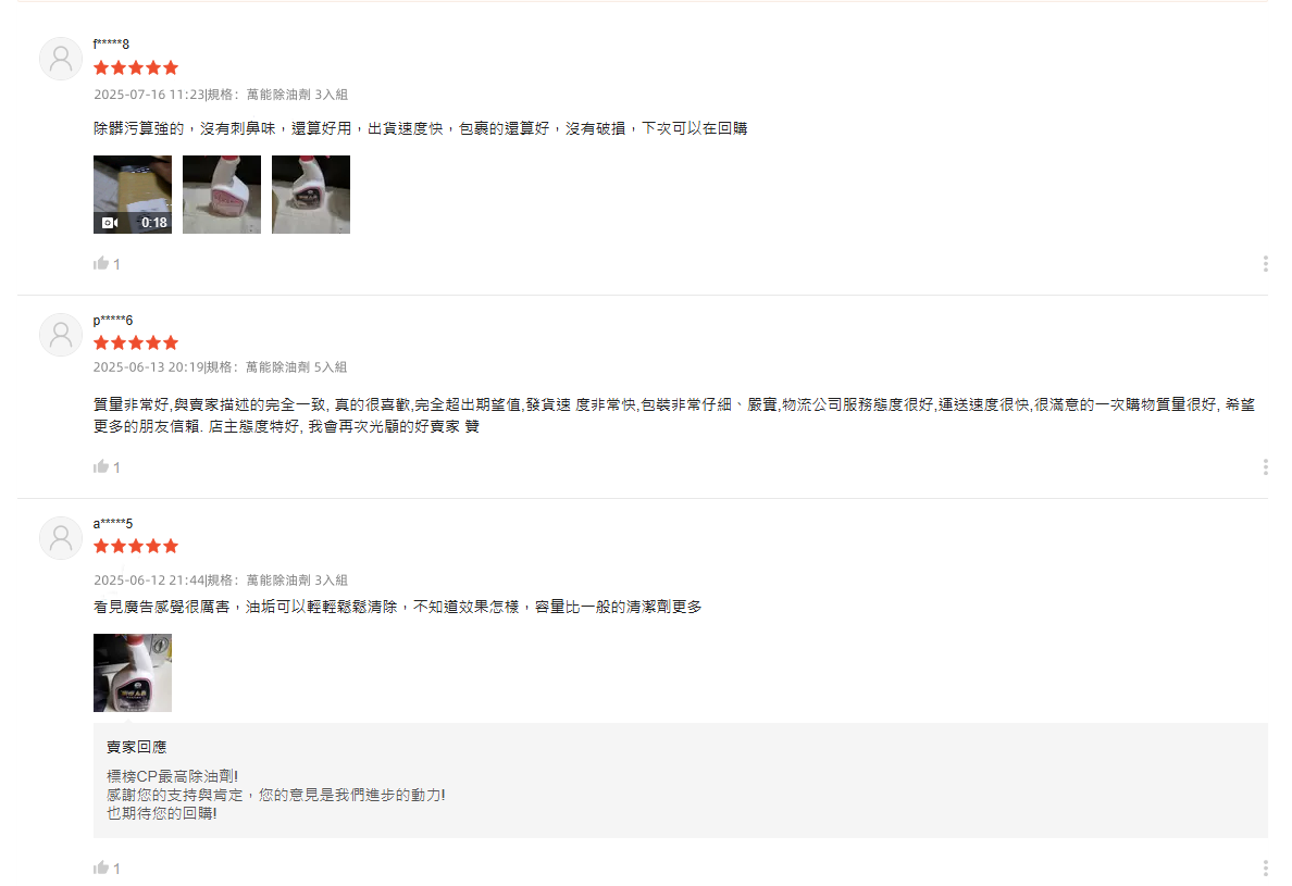 5分鐘前【夜市人生清潔劑】-(夜市人生水垢還原劑)適合各處殘留水垢,只清水垢,不傷手/不刺鼻,只要有水垢的地方通通清的起來!【夜市人生萬能除油劑】廚房救星!❗油污秒殺❗ 噴後10秒擦淨|網友狂推|頑固油漬剋星|輕鬆分解重油污 - 台灣製【夜市人生萬能除油劑】好用不傷手 買三送三 6組分享裝NT$1380(單瓶NT$230)