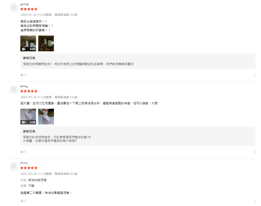 7分鐘前【夜市人生清潔劑】-(夜市人生水垢還原劑)適合各處殘留水垢,只清水垢,不傷手/不刺鼻,只要有水垢的地方通通清的起來!【夜市人生萬能除油劑】廚房救星!❗油污秒殺❗ 噴後10秒擦淨|網友狂推|頑固油漬剋星|輕鬆分解重油污 - 台灣製【夜市人生萬能除油劑】頑固油漬剋星 買四送四 8組囤貨組NT$1580(單瓶NT$197)