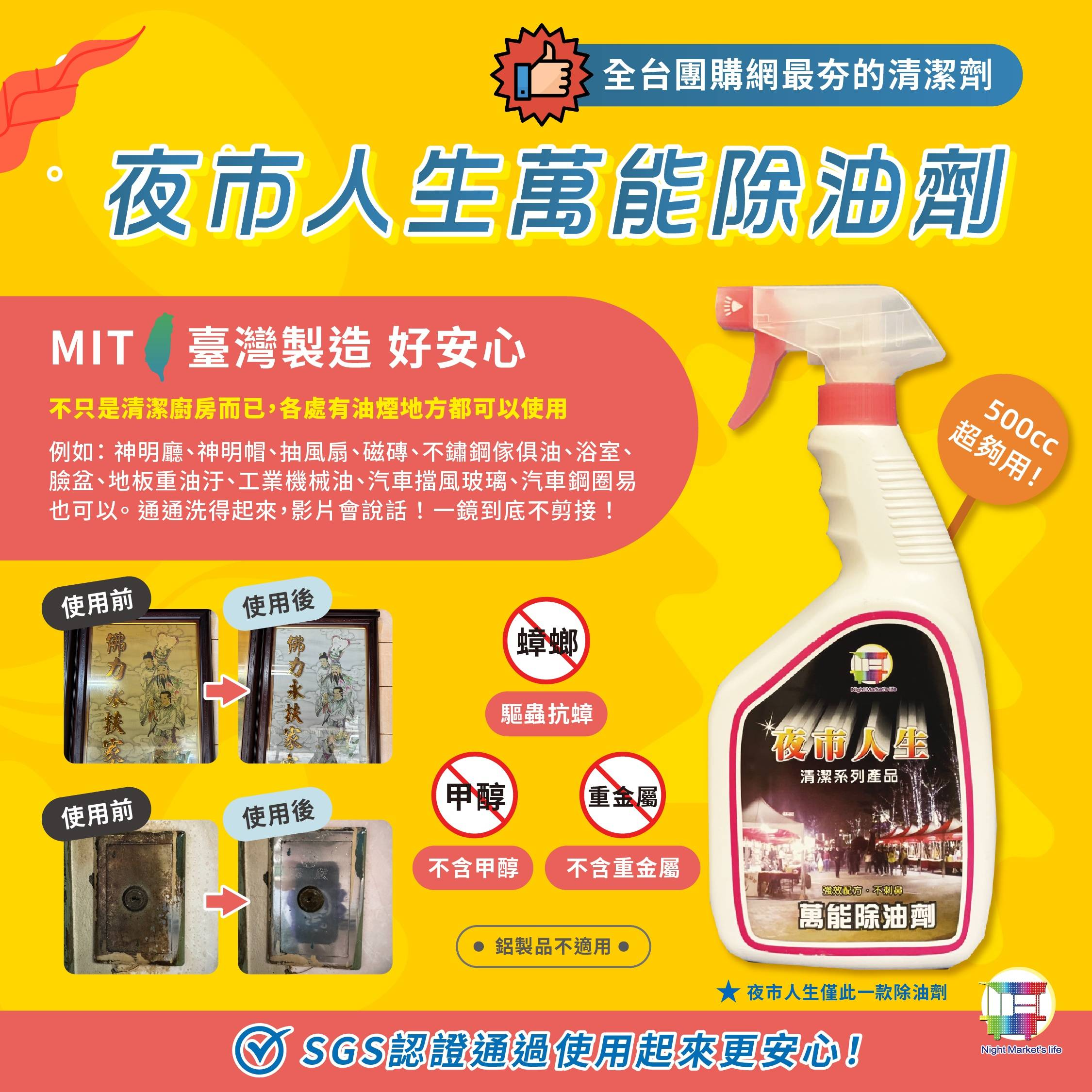 7分鐘前台灣製【夜市人生萬能除油劑】好用不傷手 買三送三 6組分享裝NT$1380(單瓶NT$230)