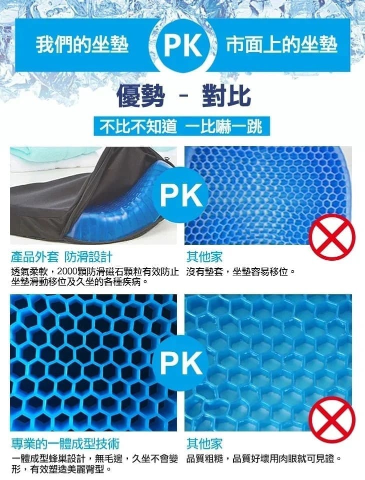 4分鐘前【買一送一】涼爽透氣蜂巢冷凝膠坐墊 - 【超夯活動】三入組NT$1399 每件都送坐墊布套
