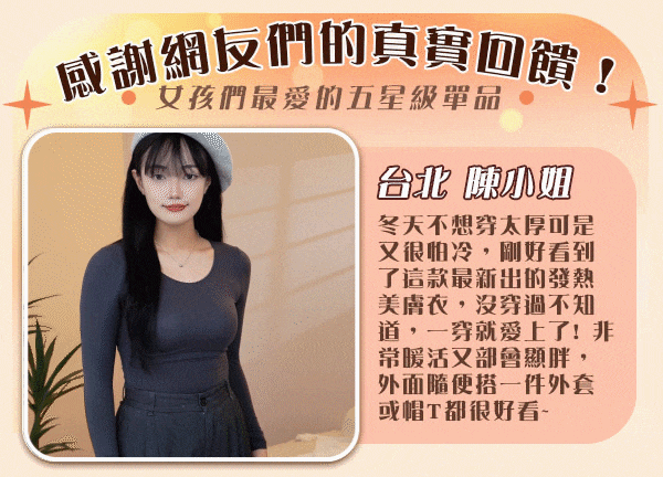 25分鐘前滋養肌膚+保暖二合一 輕薄保暖,越穿肌膚越白嫩 日本銷售排名第一【美しい肌】新秋冬美肌發熱衣 - 「限時特惠」任選2套NT$1288