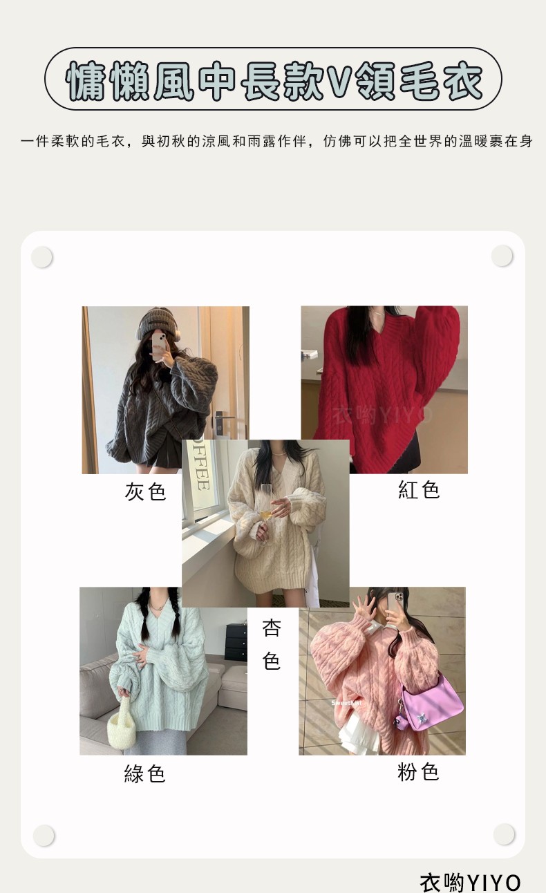半小時前冬季爆款//台灣發貨+熱賣針織上衣 韓版法式V領麻花毛衣//加厚寬鬆慵懶風軟糯針織衫秋冬上衣 寬鬆上衣 毛毛外套 - 一件體驗裝NT$899