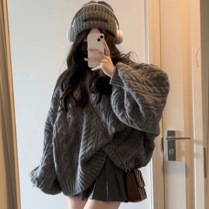 5分鐘前冬季爆款//台灣發貨+熱賣針織上衣 韓版法式V領麻花毛衣//加厚寬鬆慵懶風軟糯針織衫秋冬上衣 寬鬆上衣 毛毛外套 - 一件體驗裝NT$899