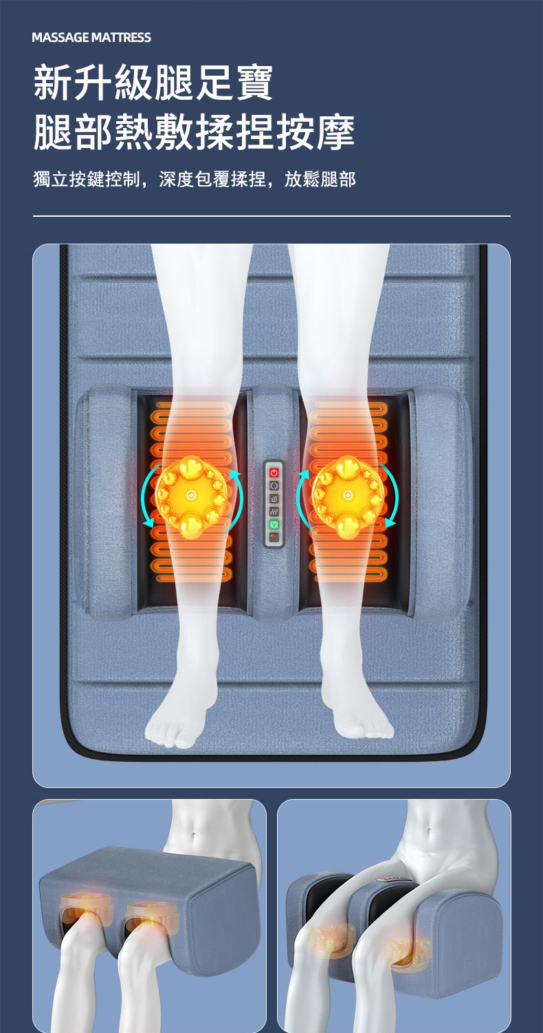 12分鐘前多功能全身按摩床墊 | 電動加熱頸椎、腰部、背部、腿部全方位按摩器,舒緩身心疲勞 - 豪華皮質款五合一可拆卸(藥枕+頸部滾輪+震動加熱+【腿部加熱揉捏】)