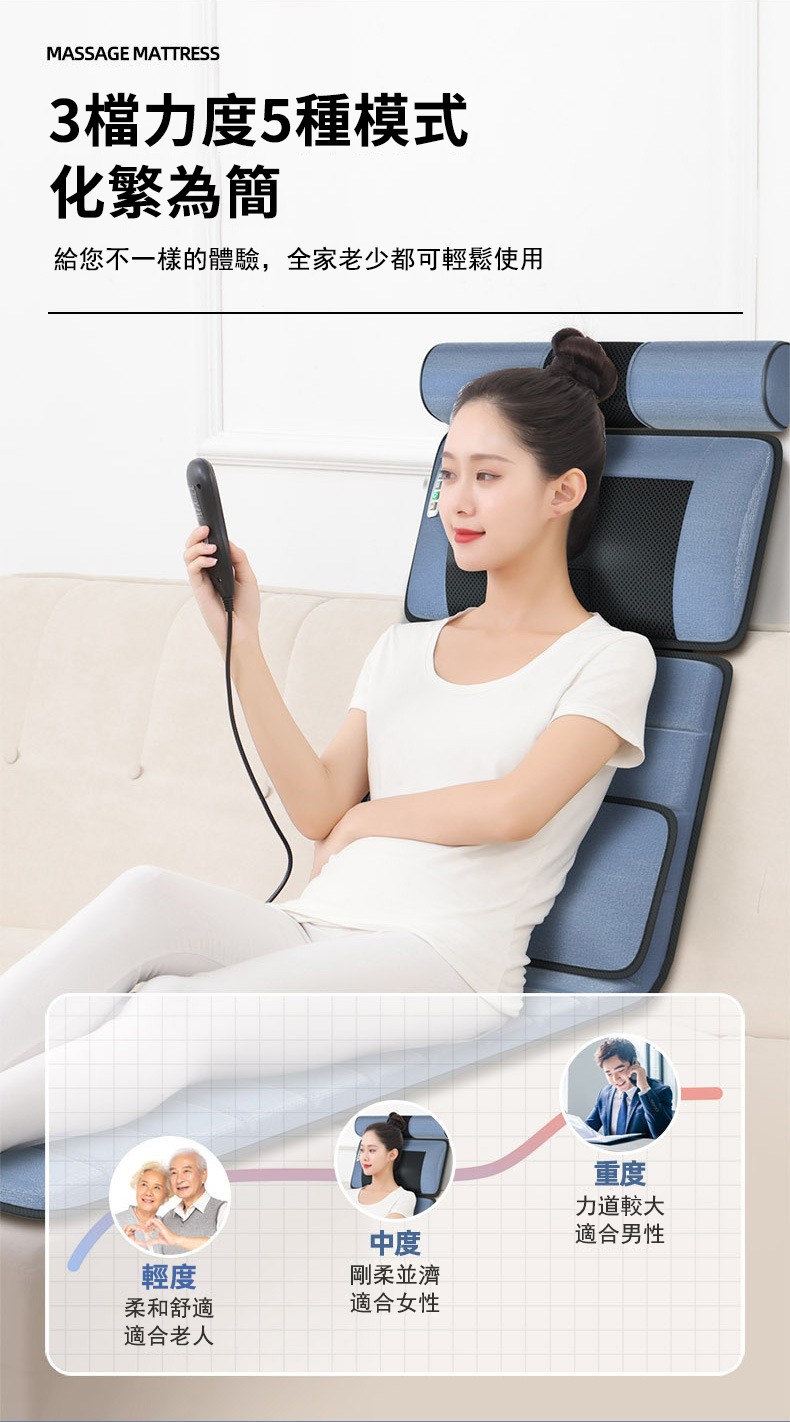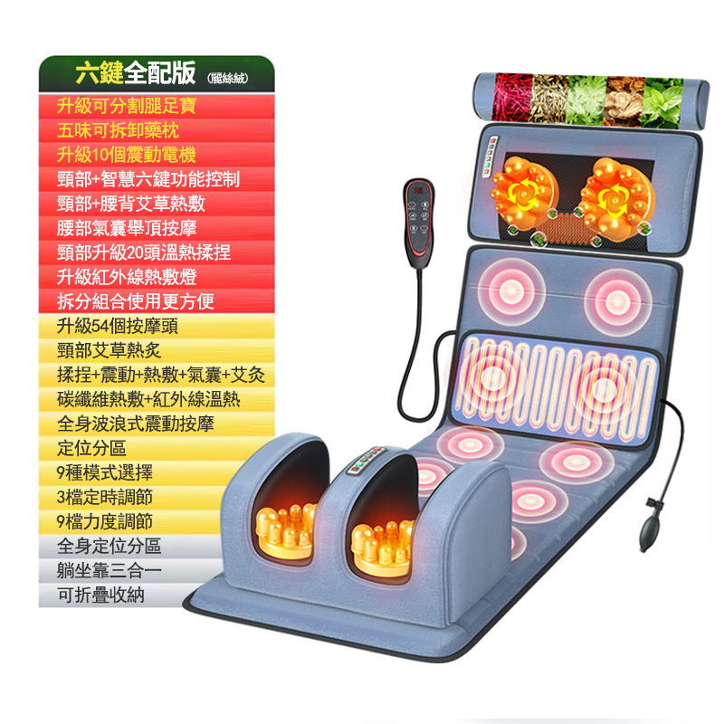 5分鐘前多功能全身按摩床墊 | 電動加熱頸椎、腰部、背部、腿部全方位按摩器,舒緩身心疲勞 - 6鍵旗艦款(6鍵揉捏+震動+氣囊+10電機+腰部熱敷)