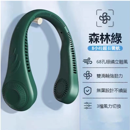 4分鐘前【24小時連續使用超長續航】#掛脖風扇 #3檔自由調節長續航 免運費 貨到付款 - 【綠色-無葉設計不饒發】【買一送一】