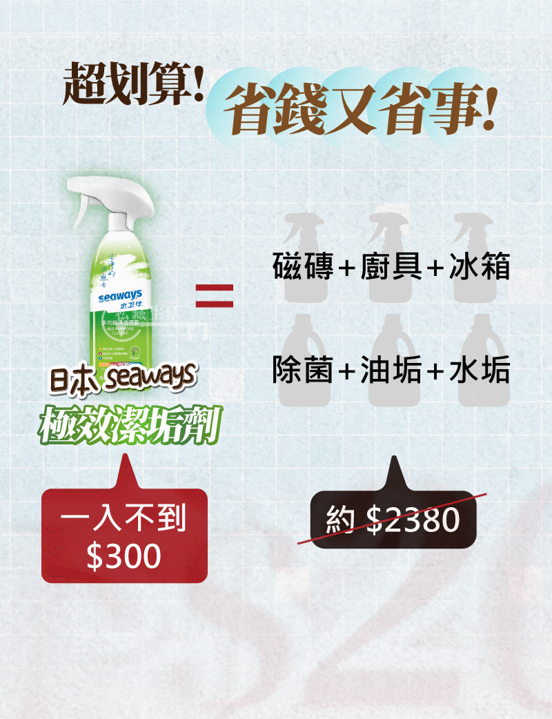 25分鐘前全屋煥然一新日本瘋搶除垢劑【Seaways極效潔垢劑】極效去汙X乾淨透亮 - 極效潔垢劑【2入】再享免運!