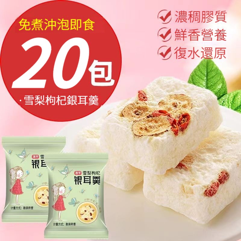 15分鐘前冻干银耳羹红枣雪梨枸杞莲子免煮速食低脂零食冲泡微甜银耳羹 - 【20包】僅需998