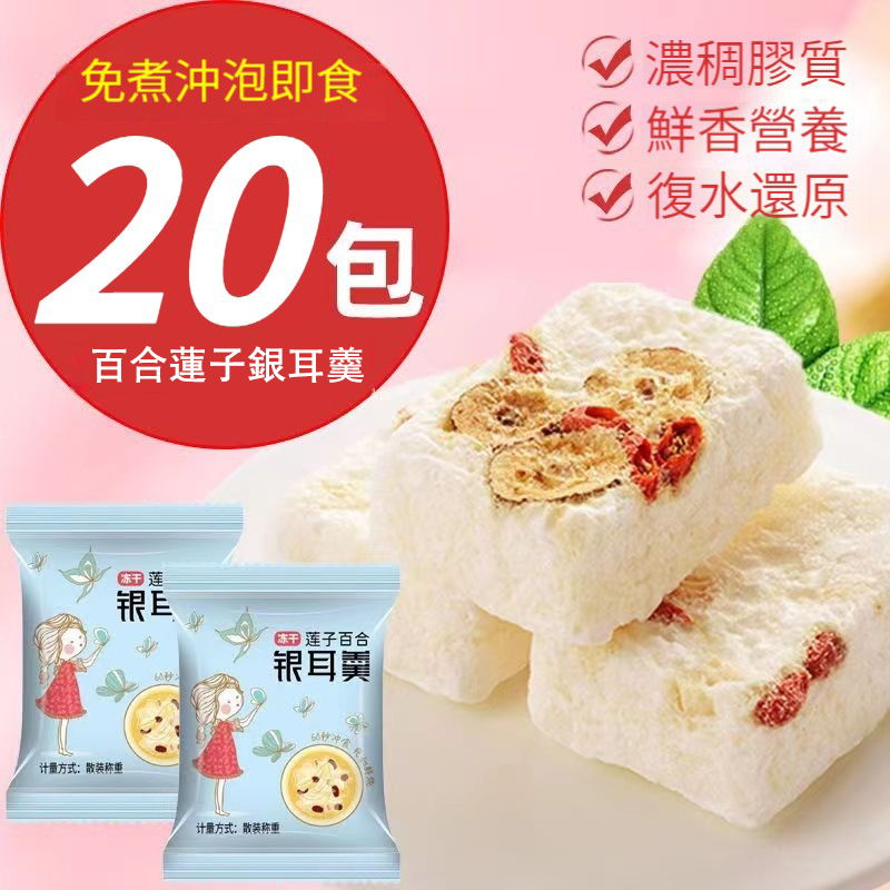 25分鐘前冻干银耳羹红枣雪梨枸杞莲子免煮速食低脂零食冲泡微甜银耳羹 - 【20包】僅需998